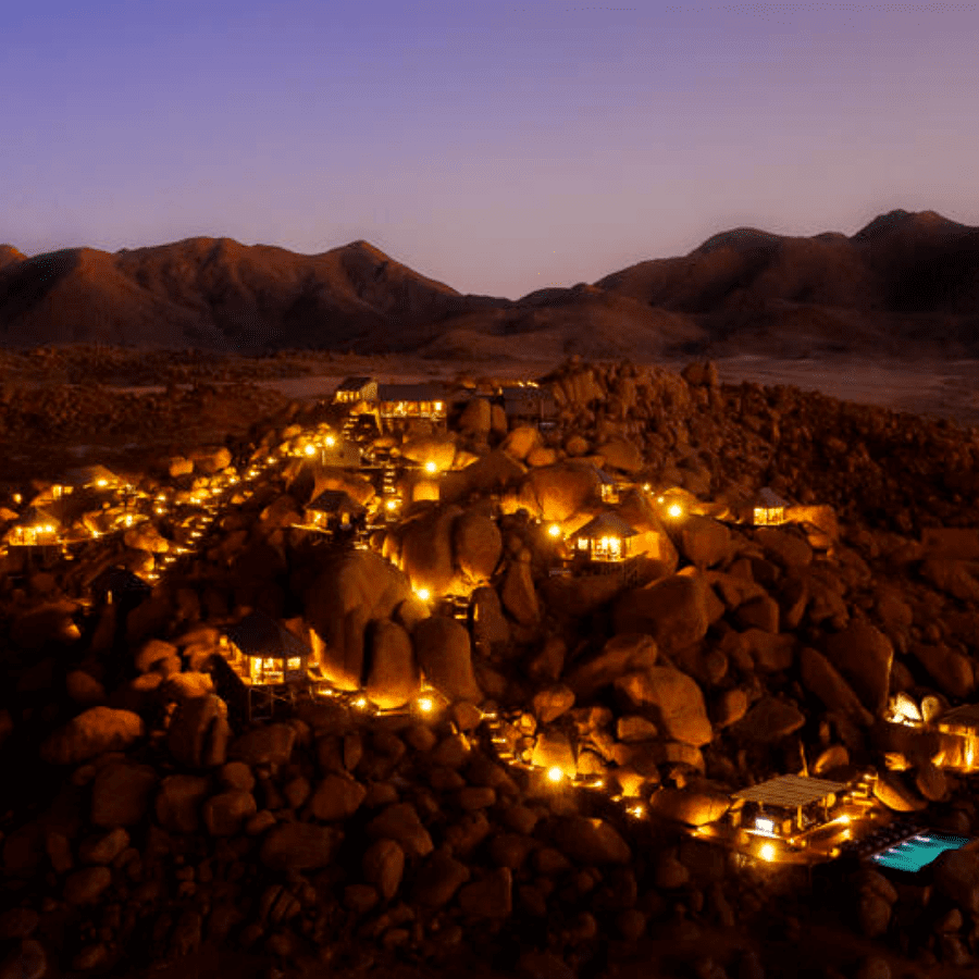 Explore Damaraland, observe rare desert-adapted wildlife and vegetation.